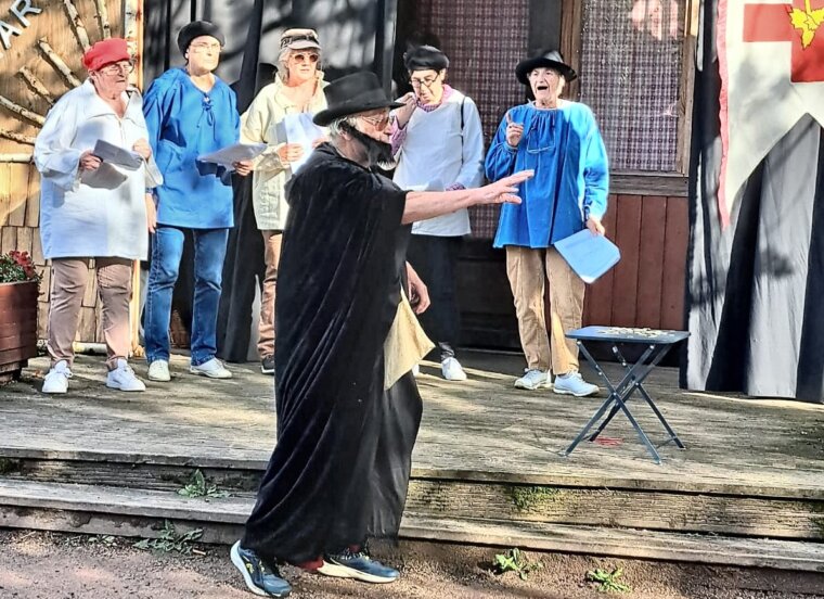 Ainsi, dans l'après midi du samedi 9 août, consacré de 14 h à 18 h à l'initiation au tennis de table, plusieurs compagnies de théâtre amateur proposent leur "jubilation " créative , par des alternances de 10 à 15 mn .