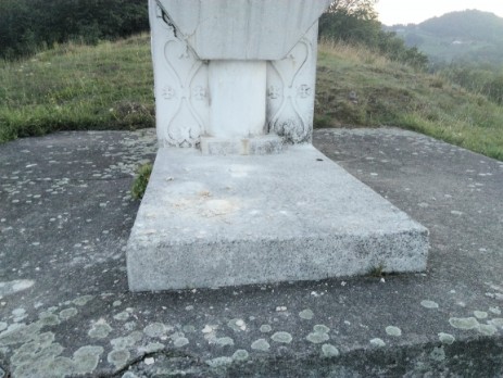 du corps de la statue. Sur la tablette et au sol, quelques tas de poussière