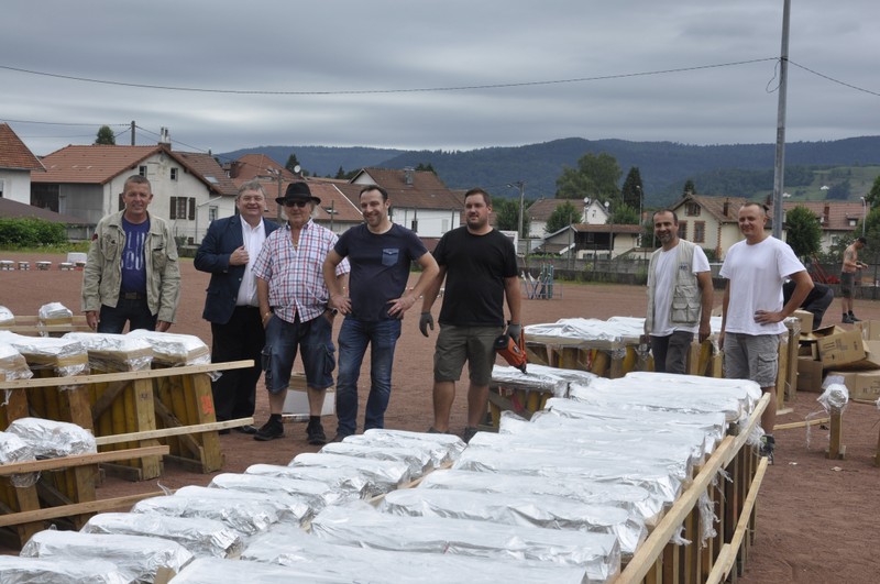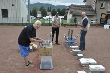 Les préparatifs vont bon train au stade Grosjean afin que tout soit prêt pour le méga spectacle de ce soir, sous les yeux de François Vannson qui tient beaucoup à s’impliquer dans cette manifestation d’envergure qu’il a largement contribué à créer : « Elle a un côté affectif très prononcé pour moi » avoue le Président du Conseil Départemental avec le sourire. Et même si l’équipe est sur le terrain depuis ce matin 5 heures, le travail a débuté il y a une semaine dans les ateliers de Marc Clavel. « Le spectacle durera exactement 31 minutes » confie le maître artificier avant de céder la parole à son gendre Jean-François Florence, auquel il a confié les rênes de l’entreprise, qui détaille « Ce sont quelques 10 000 projectiles qui vont être tirés ce soir, pilotés par informatique, dont 600 bombes de gros calibre, présentant un diamètre de 100 mètres à 120 mètres de haut.