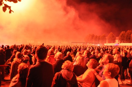 Il est 22h30 ce samedi. Après quelques mots de Michel Mourot et François Vannson souhaitant « bon spectacle » à l’immense foule ayant pris possession du stade Grosjean, les lumières s’éteignent. Place au spectacle tant attendu !