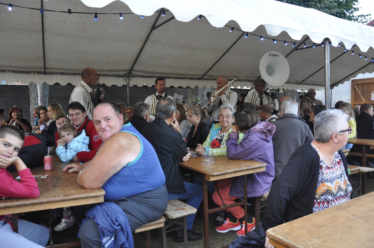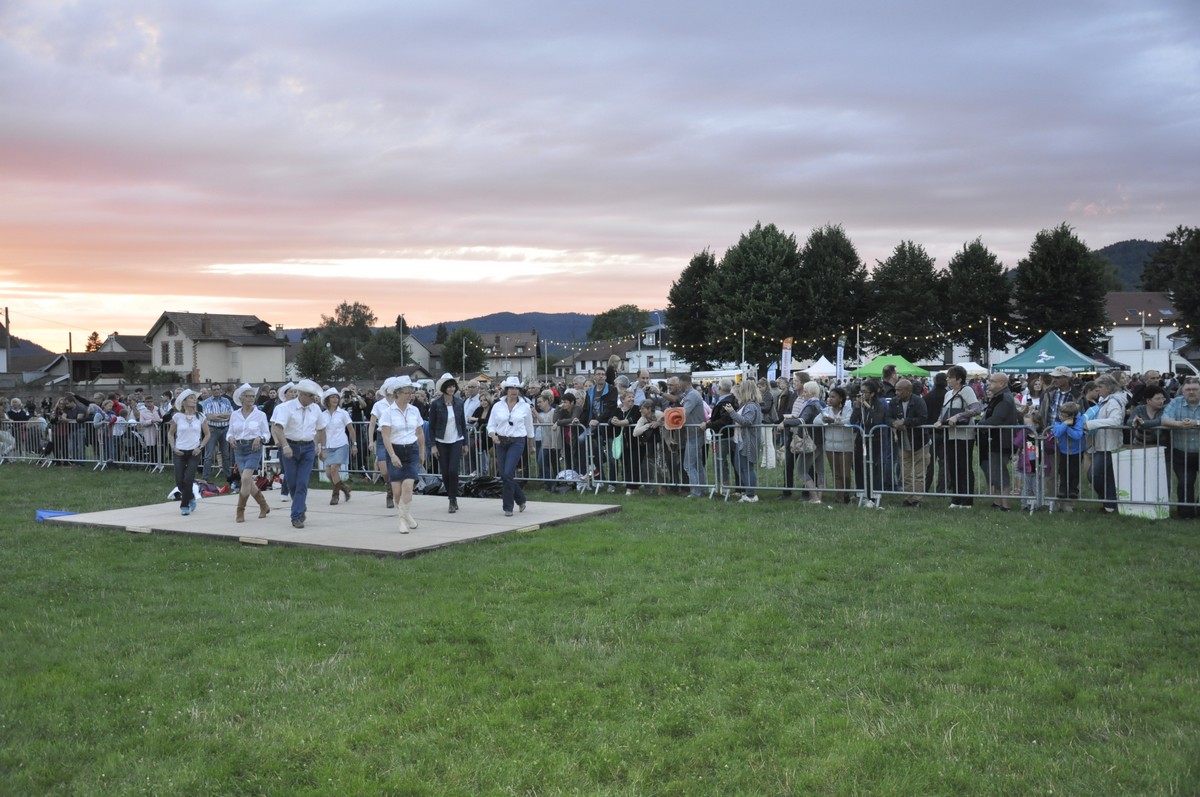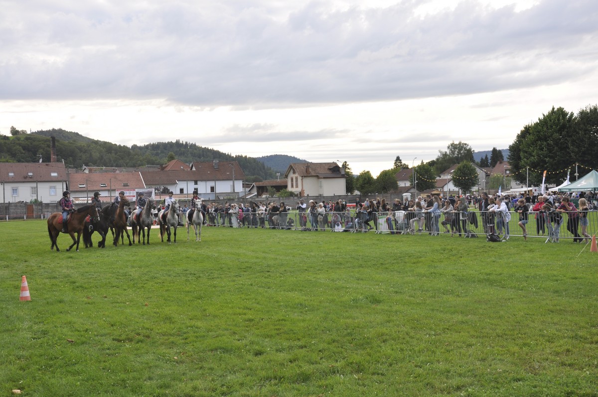 Bien avant l’arrivée de la grosse vague des spectateurs et le début du spectacle multimédia (voir la publication d’hier), le public était bien présent dès la fin de l’après-midi. Sous la conduite de Laurent, animateur de la manifestation, il a pu se délecter des animations proposées par HVA (Hautes Vosges Animations) : démonstrations de coordination équestre avec les cavalières de la Jumenterie (le centre équestre de St Maurice sur Moselle qui proposait également des balades en poneys pour les bambins à l’extérieur du stade), prestation de danse country par le « Country Liberty Club » d’Arches ou encore le robot musical datant de 1922 présent sur la pelouse du stade en début de soirée, sans oublier l’ensemble « Blue Dixie Band » qui a semé la bonne humeur avec ses reprises de thèmes « New Orleans ».