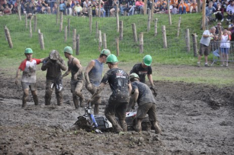 Ça hurle, ça vrombit, ça rugit, ça crache, ça pétarade, ça fume, ça cale, ça repart… le tout dans des gerbes de boue bien grasse. Après avoir poussé le moteur de leur engin en limite de zone rouge, les pilotes s’élancent sur les vingt mètres de la piste d’élan avant de plonger dans les soixante mètres de la mare de boue dont ils doivent sortir vainqueur en un minimum de temps. Et même si l’épreuve est avant tout un moyen de s’éclater dans la bonne humeur, il n’empêche qu’elle constitue un véritable défi que chacun veut relever avec une motivation extrême. Et si certains passent « les doigts dans le nez », d’autres sont dans l’obligation de se résigner à voir les commissaires mesurer la distance parcourue avant qu’ils accrochent leur engin embourbé au bout du bras mécanique de la pelle pour le sortir du bourbier. De cette édition 2017, on retiendra que Lucas Bochet a remporté l’épreuve pour la 3ème année consécutive en MP2, signant au passage le meilleur temps « scratch » toutes catégories confondues. Une victoire qui a été marquée par une galipette plus spectaculaire que grave à l’arrivée de la 3ème et dernière manche. Et si le jeune motard local a réalisé un superbe temps de 4’85, il reste cependant en deçà des 4’36 réalisées il y quelques années et qui demeurent le record de référence.