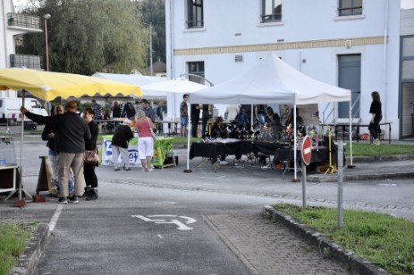 d’exposants qui ont pris possession du parking de la salle des fêtes. Des