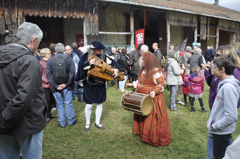 Ménestrels, bonimenteurs, forgeron, perceur de tuyaux en bois, couturières, gens d’armes, explosions de poudre noire, tir à l’arbalète, duels à l’épée, soldats en armure... le tout placé sous la haute autorité du Duc de Lorraine auquel le roi Louis XIII avait tenu à rendre visite : la fête marquant les célébrations du 400ème anniversaire de la première utilisation de la poudre noire en milieu minier dans la commune ont permis un dépaysement total, faisant remonter les visiteurs en 1617. Un voyage extraordinaire ! A proximité de l’ancienne halle de l’ancienne gare, les stands et animations se sont succédées avec rythme tout au long de l’après-midi de samedi, offrant aux spectateurs des moments magiques. Entre deux morceaux joués sur sa vielle à roue, Arnaud était intarissable sur les vieux instruments de musique. Les mains magiques des couturières bussenettes, créatrices des costumes du Duc, de la Duchesse et leur escorte présentaient leurs superbes réalisations. Les groupes de musiques aux instruments aussi anciens que variés faisaient entendre leurs sonorités oubliées. Des duels à l’épée aussi spectaculaires que sans danger attiraient les regards des jeunes et moins jeunes. Le fondeur de bijoux n’en finissait pas de chauffer son mélange plomb-étain pour de nouvelles créations, pendant que d’autres s’exerçaient avec plus ou moins de réussite au tir à l’arbalète.