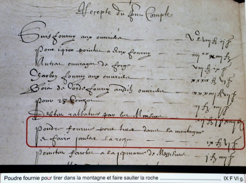Le premier document, daté du 4ème trimestre 1617, atteste de l’achat de poudre pour « tirer dans la montagne et faire sauter la roche », une découverte de taille XXL qu’Alain Weber, spécialiste des archives, doit en grande partie au hasard, mais qui permet de détrôner de 10 ans la référence de Chemnitz ! Quant à Schio, en Italie, la date de 1574 a été « retoquée », l’explosif n’ayant pas servi à des fins minières. Les mines du Thillot détiennent donc - « Pour l’instant, car pouvant être remis en cause par d’éventuelles nouvelles découvertes » avouait avec humilité le président de la SESAM – le privilège de la première utilisation de la poudre noire à des fins minières en Europe.