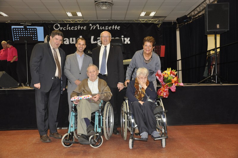 Le traditionnel repas annuel des Aînés a rassemblé quelques 230 convives ce dimanche à la salle Cécile Valence. Un moment de convivialité que beaucoup ne veulent manquer pour rien au monde, synonyme de journée de partage et, pour certains d’entre eux, de rupture d’une monotonie quotidienne souvent associée à la solitude. Qui plus est, cette rencontre rime également avec la promesse d’un succulent repas servi par une imposante équipe de bénévoles aux petits soins pour chacun d’entre eux et d’une animation musicale assurée cette année par l’orchestre d’Arnaud Lacroix. En introduction à cette journée, Michel Mourot, Dominique Peduzzi et Christophe Naegelen se sont rejoints pour un hommage unanime à « Ceux qui sont à l’origine de ce que nous savons aujourd’hui et qui ne peut que générer du respect ». Le premier magistrat a tenu de plus à braquer le feu des projecteurs en direction de Karine Suares qui a patiemment conçu les décorations de table qui, témoins les applaudissements nourris, ont été très appréciées. Avant d’entamer les choses sérieuses avec l’apéritif, les doyens du jour ont été mis à l’honneur : Mme Suzanne Gaspard née le 14 avril 1919 et Mr Michel Delesmont qui a vu le jour le 24 octobre 1926. A noter que la doyenne de la commune, Mme Colle, âgée de 102 ans, n’avait pas pu être présente à cette journée.