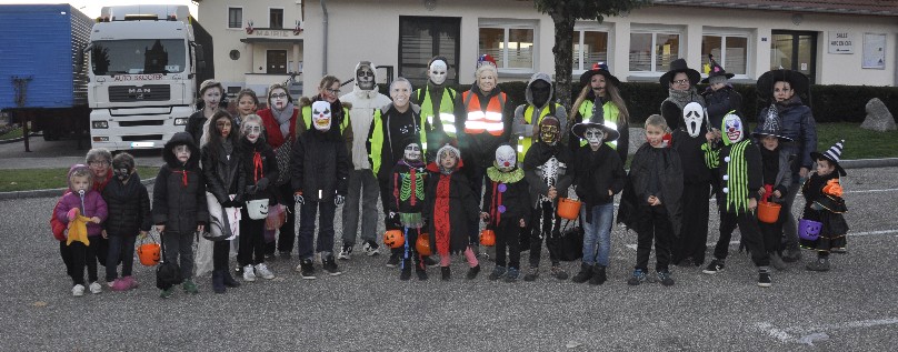 Récemment constituée, la classe 2020 a placé Merlin Limon à la présidence. D’ores et déjà, le groupe démontre son enthousiasme et a mis un point un calendrier bien fourni, en relation étroite avec la commune qui, comme les années précédentes, s'est engagée à un partenariat d'un an. Jugez plutôt : particpation au Téléthon et à la St Nicolas, loto vers la mi-février, bal de la classe en avril, chavande en juin et également un tournoi de football actuellement à l’étude, tout cela après avoir organisé un concours de pêche et participé activement au repas des Anciens. Mais pour débuter les festivités, les jeunes de la classe avaient invités une ribambelle de monstres en tous genres à la traditionnelle tournée d’Halloween. C’est ainsi que sorcières, diables, zombies et autres clowns aux rictus pas du tout engageants se sont rassemblés à proximité de la salle des fêtes avant de partir, paniers en main, en quête des bonbons que les adultes des foyers visités n’ont pas manqué de leur offrir en abondance, accompagnant leurs dons d’immanquables sourires devant cette compagnie tout aussi terrifiante que sympathique.