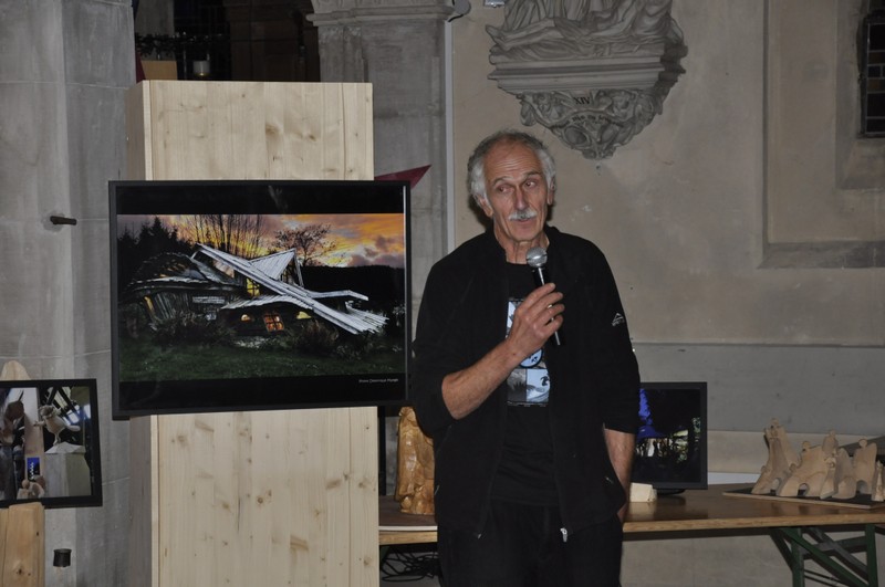 Il y a environ un an et demi, la douce Marie-Alice, mère de Francis s’éteignait, rejoingnant son défunt Raymond et laissait la maison familiale vide. S’est bien évidemment posée la question de son devenir. Parmi les sept enfants, certains réclament légitimement leur part de cet héritage familial. Diverses alternatives ont été passées au crible. Certaines des issues évoquées mettent clairement l’atelier en péril, cette superbe « Maison aux sculptures », devenue si familière dans le paysage artistique local - et bien au-delà ! – par une destruction pure et simple. Francis, très attaché à sa "cabane" et avec la complicité constructive de proches, a décidé qu’il en serait autrement. Après la période de la réflexion est venue celle de l'action. Vendredi en soirée, à la chapelle de Travexin, sympathiquement mise à sa disposition par Gérard et Estelle, les propriétaires du lieu, le sculpteur avait réuni quelques-uns de ses amis les plus proches – ils étaient tout de même une bonne centaine – afin de leur soumettre un double projet permettant de sauver cet atelier.
