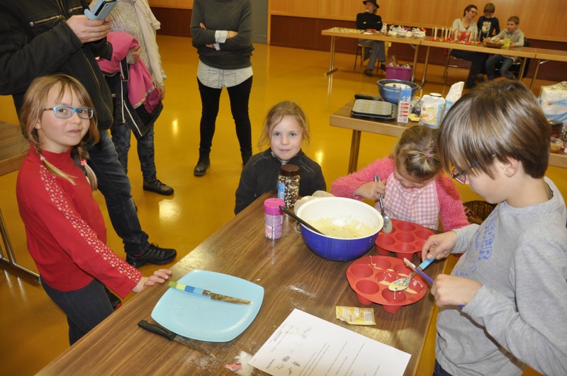 petits chefs qui ont pris grand soin pour réaliser des muffins.