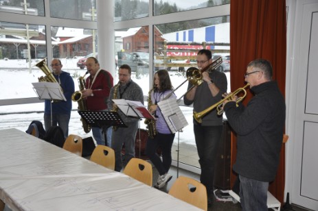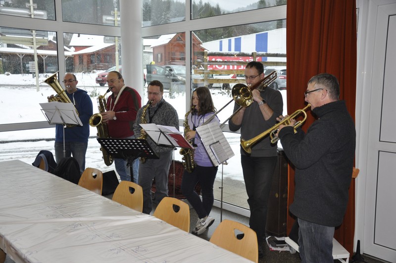 La météo était exécrable ce dimanche matin : une pluie intense avait succédé dans la matinée à la neige arrivée au sol en début de journée, transformant la voie verte en voie « gadouilleuse » à souhait. Peu importe, les 570 randonneurs inscrits à cette douzième édition de la marche gourmande - recod battu ! - ont tenu leur engagement de rallier St Maurice à Ferdrupt. Avant de se lancer à l’assaut de ce parcours, les randonneurs ont été superbement accueillis à la salle de multi-activité de St Maurice : boissons et gâteaux à profusion, le tout égayé par une chaude ambiance musicale assurée par 6 musiciens qui ont suivi les randonneurs aux points de rendez-vous gourmands.