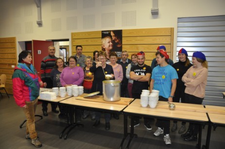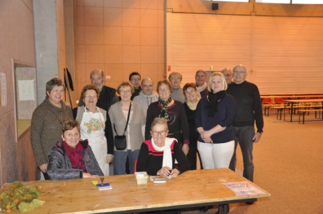 Le temps pour Alexis, parrain de la manifestation, de couper le ruban inaugural à l’invitation de Reine Mai, chef d’orchestre aussi discrète qu’efficace, en présence de nombreux élus et les marcheurs pouvaient s’élancer. Au compte-goutte d’abord, nombreux étant ceux qui ont souhaité profiter de l’ambiance chaude et sèche des lieux avant de sortir affronter les conditions météorologiques peu enviables. C’est d’abord à la salle des fêtes de Fresse que les marcheurs avaient rendez-vous pour une super-soupe de légumes, faite « maison », l’équipe ayant travaillé la veille à éplucher quelques 104 kg de légumes frais pour offrir ce succulent potage aux visiteurs un tantinet transis et totalement mouillés. De quoi refaire le plein d’énergie avant de rejoindre la salle omnisport du Thillot et profiter d’un « tofailles – fumé » que « Miguel » Petitjean a négocié au mieux pour respecter les consignes budgétaires fortes imposées. Et l’élu de préciser « Nous avons pu profiter de la générosité d’Intermarché qui a fourni de nombreuses boissons, en plus de prendre en charge l’inscription à cette marche gourmande de 89 personnes ». L’estomac déjà bien rempli, il restait aux randonneurs à rejoindre Ferdrupt pour le dessert sucré, de nature à les « requinquer », servi par une équipe aussi serviable qu’enthousiaste, chaleureuse et investie. Car, si les randonneurs avaient en ce jour les projecteurs braqués sur eux, il convient néanmoins de mettre en lumière le travail accompli par les nombreux bénévoles qui ont permis la belle réussite de cette nouvelle édition de la marche gourmande.