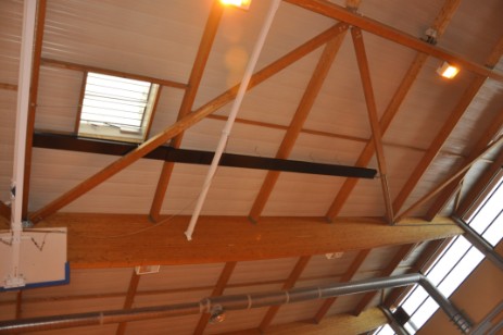 cause, la toiture de la salle, au niveau de la fenêtre d’évacuation
