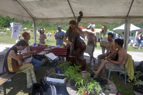 A l’ombre d’un chapiteau, les musiciens qui s’étaient produits la veille en « remettaient »