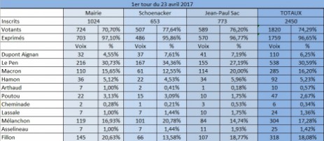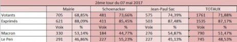 qui ont déposé leur bulletin à la Mairie (Macron en tête avec 55.14%) et à la