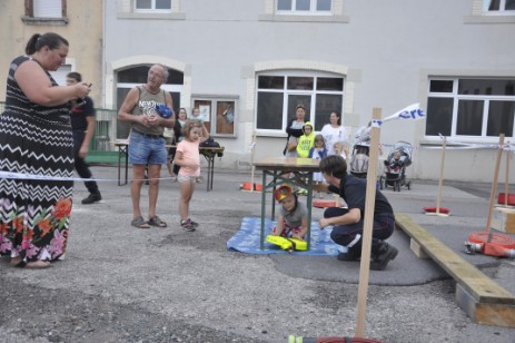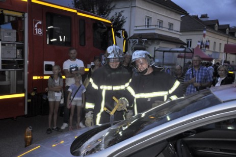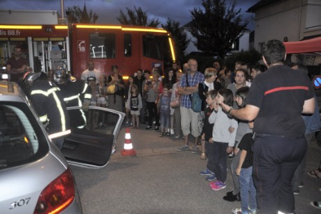 Même si Francis Panot, chef d’orchestre de ces soirées, déplorait la défection de 2 animations prévues ce jour (exposition de voitures de collection sur le parking des Anciens d’AFN et groupe de musique sur la place de la République), la soirée restait richement pourvue en animations de toutes sortes. Le public, venu en grand nombre, a pu apprécier. Du côté de l’école primaire Jules Ferry, les pompiers ont « fait le show » ! La file d’attente était imposante pour avoir le privilège de grimper en haut de la grande échelle, déployée à « seulement » 18m sur les 25 possibles par Régis Thomesse. Totalement sécurisés, les jeunes volontaires ont pu gravir les barreaux et admirer le paysage depuis leur « perchoir ». Belles sensations garanties !