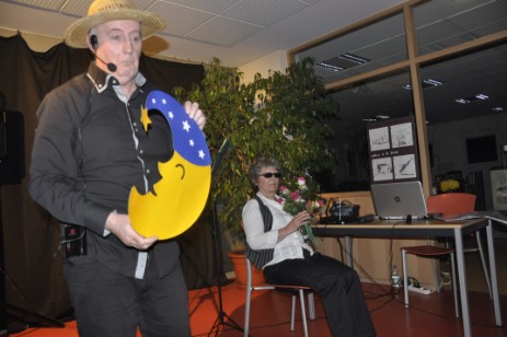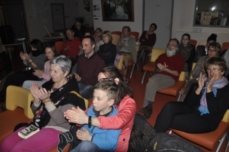 Léo Greco : un nom qui sonne comme une évidence pour un poète. Issu d’une fusion fortuite (?) de deux références artistiques et poétiques que sont Léo Ferré et Juliette Greco, Léo Greco assume cet «héritage» avec talent. Dans une ambiance quasi-familiale à l’étage de la médiathèque, le poète chanteur a déclamé des textes d’où perlaient l’émotion, les émotions. Et ce ne sont pas les petits problèmes techniques ou les quelques notes dissonantes qui sont venues troubler ce spectacle où les thèmes éternels ont été abordés avec ferveur. Du temps qui passe au droit à la différence, de la violence insupportable faite aux hommes par leurs congénères à la solitude, de la question d’une existence divine à l’oubli, de la nostalgie à l’éternité, de la liberté à l’hommage aux chers disparus, de la folie à l’espoir, Léo Greco a enchainé textes et chansons, n’hésitant pas à faire appel à Ferré ou Aragon pour faire passer son message poétique. Un message nécessairement humaniste : «Est-ce ainsi que les hommes vivent ? », souvent en colère : «J’ai renié ton nom : fraternité ! », mais plus encore résolument optimiste : «N’oubliez jamais de vivre». Connaissant parfaitement le poids et le pouvoir des mots « Qui, comme les armes, peuvent tuer ! », le poète les a mis au service de l’émotion et de la Vie.