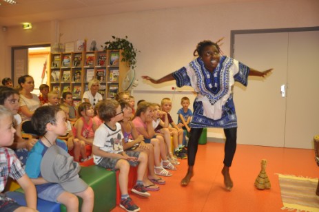 A la médiathèque, les enfants occupent une place à part entière. Que ce soit lecture de contes, histoires interactives avec marionnettes, large panel de livres pour bambins ou de supports audio et vidéo adaptés, ce public est largement présent dans les préoccupations des animatrices. Une place de choix qui se justifie pleinement. La lecture permet évidemment un apprentissage ludique de la langue française, tant au niveau du vocabulaire, de la grammaire et de conjugaison, tandis qu’avant l’âge de la lecture, ces animations stimulent l’imaginaire et établissent le lien avec le livre. Une action profondément éducative qu’il est important que les parents relaient à la maison. Ce mercredi, les boud’choux avaient rendez-vous avec Solo Gomez, une conteuse de grand talent proposée par le Théâtre du Peuple qui, lui aussi, a cette préoccupation de proposer des spectacles pour enfants. Mélange subtil de chants, de musiques interprétées avec des instruments traditionnels, de danses, de contes imprégnés de cette poésie inimitable des pays noirs africains, la conteuse a su captiver son public au sein duquel quelques adultes n’ont pas boudé leur plaisir, le faire participer et, bien évidemment le faire applaudir en signe de remerciements pour cet excellent moment passé ensemble.