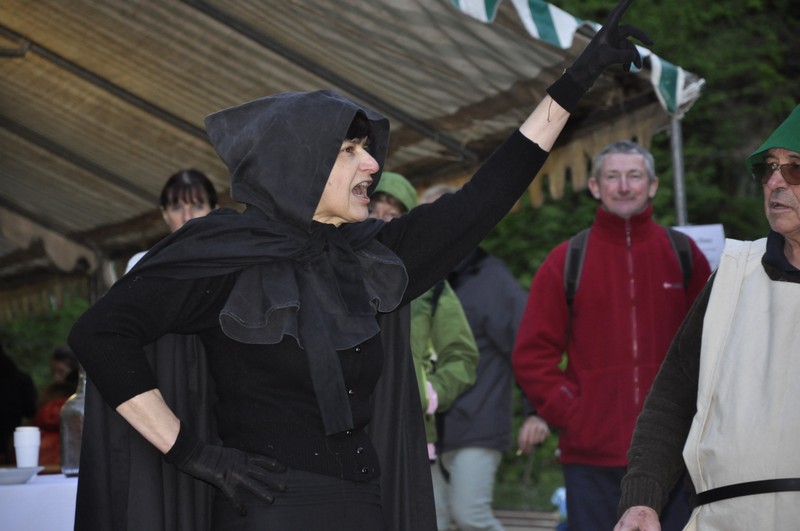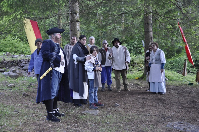 Une fois sur place, et après que chacun ait réservé sa place pour une visite guidée de la galerie « Rouge Montagne », le public avait droit à un feu d’artifice d’animations. Après un petit coucou câlin aux jeunes veaux et chèvres du GAEC du Vacceux et de la ferme de Noiregoutte avec , en prime, dégustation de fromages, le public pouvait se diriger vers le stand de « La Mesnie sans terre » qui proposait de superbes démonstrations de pratiques médiévales : cordons à la lucette – l’ancêtre du tricotin - tissage au galon, préparation d’oublis – sorte de gaufres – au feu de bois… En avançant sur le parcours, à proximité du Cabaret de la Mine où Maryse, la directrice de la médiathèque, avait revêtu son costume d’époque, la place était occupée par la troupe de RECRE qui a présenté des extraits de « Morteville » de Maurice Pottecher, adaptés par Vincent Decombis, et les enfants des NAP (Nouvelles Activités Pédagogiques) qui ont pris grand plaisir à jouer « Conte de la mine » qu’ils ont eux-mêmes écrit. Côté théâtre, le public a encore pu applaudir « De poudre et d’os », un texte mettant en 400ème la poudre noire qui sera au cœur des célébrations du 400ème anniversaire.