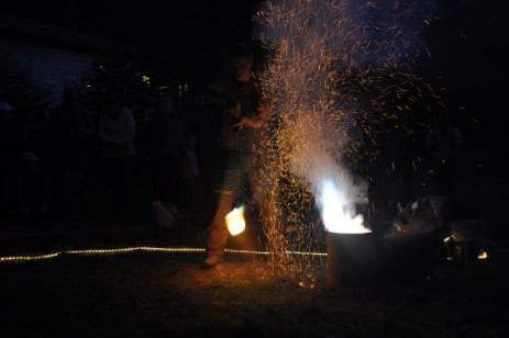 De nombreux vieux métiers étaient également présentés par les Hattatos au public : sciage de long, préparation de tuyaux de pompes, taille de charpente à la hache et fabrication d’essis. Des forgerons étaient également à l’ouvrage, quelques fois avec une cohabitation compliquée mais vécue sereinement avec les « théâtreux ». La nuit tombée était réchauffée par l’activité de Frédéric Durand qui présentait son savoir-faire de fondeur-sculpteur de bronze.