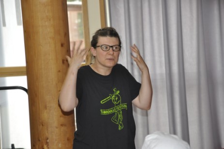 En seconde partie de soirée, les comédiennes et comédiens des Joli(e)s Mômes prenaient possession de la deuxième scène où avait été installé un décor insolite, sorte de village-cabanes médiéval aux multiples volets, permettant la mise en œuvre de scènes hilarantes. Un ton à la fois drôle et grave que la pièce, « La montagne des fleurs » co-écrite en 2007 par Louise et Sylvain Fetet, deux jeunes Thillotins, conjugue avec bonheur avec la complicité d’une mise en scène très enlevée signée Marc Alliéri. Drôle par de nombreux effets de scène, comiques de situation, mais aussi par le caractère caricatural de nombreux personnages, notamment le roi Crétin X et sa reine. Grave car posant de nombreuses questions sur la gouvernance, la prise de décision au sommet, l’arbitraire de certaines de ces décisions… Une pièce subversive ? « Non, ce n’est pas cela » répond Louise Fetet « Nous souhaitons provoquer une réflexion sur la démocratie, par le biais d’un théâtre qui se veut engagé, mais accessible à tous sans prise de tête, donc populaire ». Le public n’a pas boudé son plaisir et les éclats de rire ont donc retenti à de nombreuses reprises durant le spectacle, ponctué en final par des applaudissements nourris.