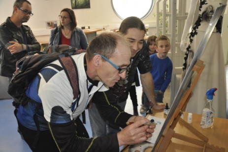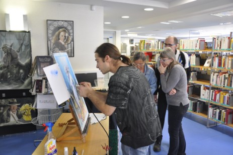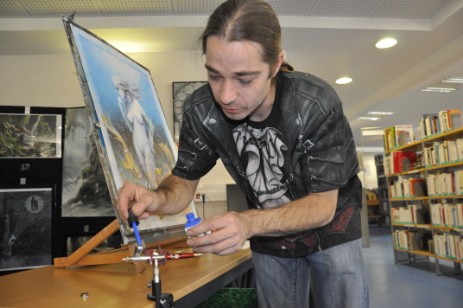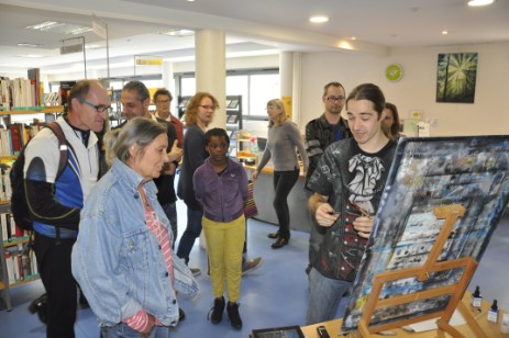 Le jeune bressaud, qui expose ses œuvres à la médiathèque depuis plusieurs jours, était ce dernier à la médiathèque pour une séance « travaux pratiques ».
