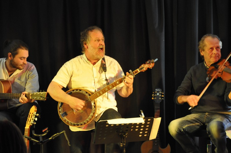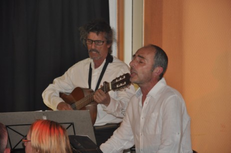 Le temps pour le public de s’installer et François Fetet, en maître de cérémonie parfait, a donné le « la» d’une soirée riche. Voulue sans sonorisation afin de nouer un meilleur contact avec le public, et autour d’un (faux) feu de camp pour instaurer une ambiance à la fois chaude et conviviale, cette soirée a permis de rendre un hommage appuyé à Léonard Cohen via son double francophone Graeme Allwright. Trente-trois titres se sont ainsi enchainés jusque tard dans la soirée, permettant à chaque artiste d’exprimer ses talents, que ce soit en individuel, en duo ou en formation à dix. Un répertoire riche et varié aux connotations quelques fois hispaniques avec Enzo le chilien et son compère José qui ont emporté l’adhésion totale du public, notamment avec leur « Malembe ». Les frontières géographiques sont donc ainsi effacées pour voyager tantôt en Espagne, en Amérique du sud ou au Québec avec quelques airs traditionnels. Le choix des titres s’est également fait – comme d’habitude – autour de reprises de textes forts de Cohen-Allwright, Brel, Jamait, Le Forestier, Lavilliers, Brassens, Ferré ou encore Pablo Neruda laissant perler des émotions vraies, un humaniste fort et un indispensable militantisme.