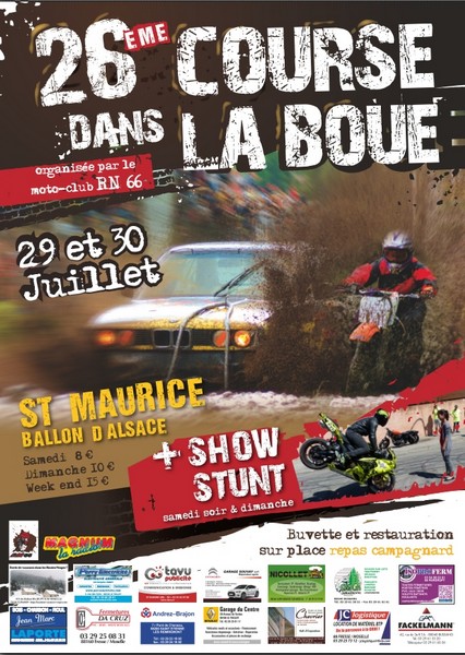 On l’aura compris, cette course dans la boue est totalement orientée vers le spectaculaire. Cette édition 2017 proposée par le Moto Club RN66 du président David Dieudonné ne faillira pas à la règle avec la première manche dès samedi, une fois les contrôles du matin effectués. En soirée et durant les intermèdes, Simon MTZ, alias Simon Martinez, se fera un plaisir de faire des démonstrations de « stunt », des acrobaties motos qu’il est quasiment le seul à pratiquer en France. Il sera possible de se restaurer sur place où sera servi un repas campagnard (toffailles, saucisse fumée, munster) pour la modique somme de 10 Euros.