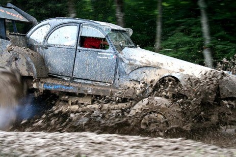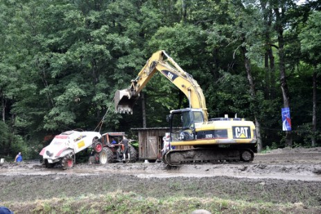 Le règlement permet tout ou presque… Du coup, pour venir à bout de cette mare de boue d’une soixantaine de mètres de longueur, les mécanos mettent en œuvre les idées les plus dingues. Et le résultat est à la hauteur, témoins cette carrosserie de 2CV montée sur un châssis de camion ou encore cette Fiat 500 équipée d’un énorme moteur BMW vues lors de précédentes éditions ! Le tout bien évidemment servi dans un concert de pots d’échappement pétaradants. Et ceux qui ne peuvent s’affranchir de cette traversée finissent irrémédiablement attelés à la pelle mécanique de Thierry qui prend de temps à autre un malin plaisir à leur faire effectuer une sortie spectaculaire…