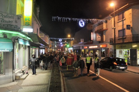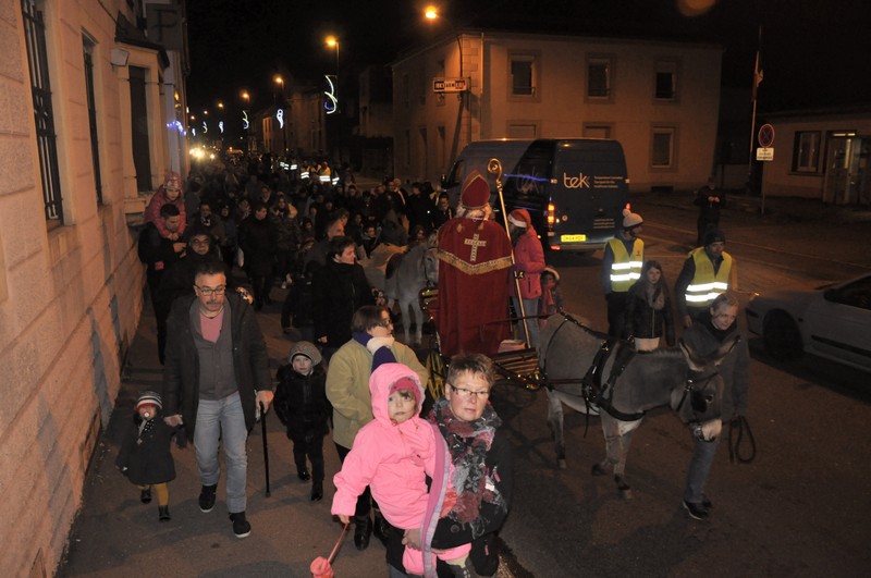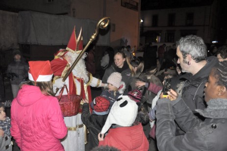 Les années passent et l’engouement pour la Saint Evêque ne faiblit pas. Certains « anciens » faisaient bien remarquer dans la foule que « C’est pas pareil qu’avant… », mais il n’empêche que l’apparition de St Nicolas, flanqué de son fidèle Père Fouettard reste une fête très appricée et donc populaire. A l’invitation d’Anim’Thillot, et après que la salle Cécile Valence abondamment garnie ait pu rire aux éclats des pitreries du clown Tofblanc, le joyeux cortège s’est mis en route pour rejoindre l’hôpital et le foyer les Tilleuls pour une visite très appréciée aux résidants des lieux. Le tout sous la protection d’un service de sécurité impressionnant : gendarmerie, police municipale, une belle équipe de bénévoles, du personnel communal, renforcés par les jeunes de la classe 2019. Au retour à la médiathèque, chacun a eu droit à sa petite brioche préparée avec amour par les artisans boulangers de la commune. Un stand de marrons grillés était également présent, avec vente au profit du Téléthon.