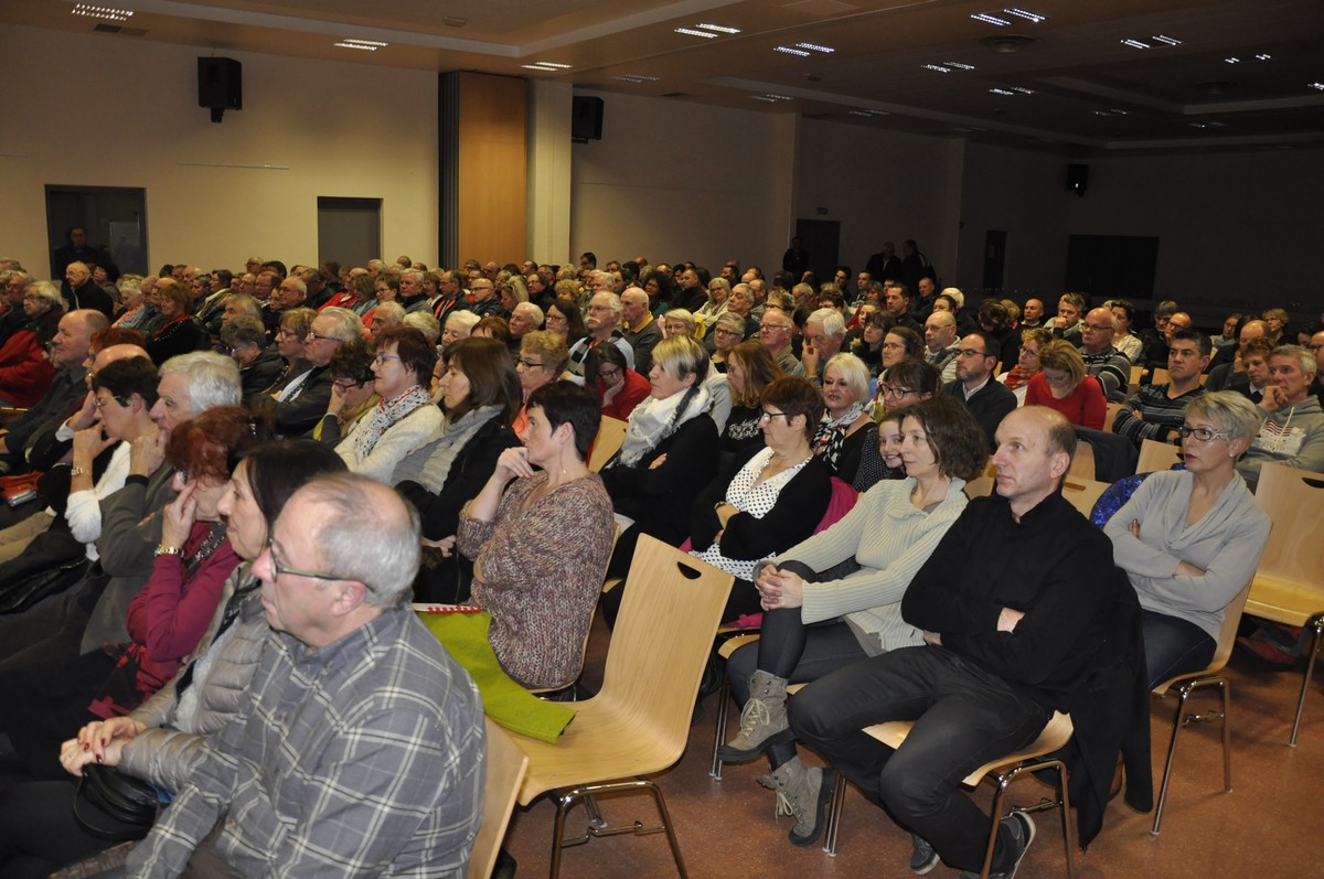 Prenant le relais au micro, Isabelle Canonaco, l’argentière communale, détaillait l’environnement financier très compliqué dans lequel évoluent les communes, avec des budgets de plus en plus serrés, des contraintes imposées par le Premier Ministre et la suppression des contrats aidés, dont 5 sont en postes dans la cité. Dans la tempête, la commune du Thillot a cependant réussi à maîtriser les dépenses de fonctionnement tout en maintenant son aide aux associations, ainsi que les montants consacrés à l’entretien du réseau routier tout en générant des économies à hauteur de 209 615 Euros sur 3 ans. Une gageure, puisque, dans le même temps, les contraintes se sont alourdies pour les mairies qui doivent désormais prendre en charge la gestion des permis de conduire et des cartes d’identité. Et tout cela en se désendettant sans pour autant renoncer aux efforts d’investissement. Un contexte sur lequel revenait le premier magistrat, détaillant les opérations en cours : parc Bluche, Pôle Petite Enfance, la démolition imminente du bâtiment de la rue Charles de Gaulle… Michel Mourot déplorait cependant la baisse des effectifs dans les écoles et évoquait la menace de fermeture de 2 classes à la prochaine rentrée : « On se battra ! » confiait-il avec conviction, avant de dénoncer avec force les commentaires lâchés sur les réseaux sociaux à propos des récents problèmes d’analyse d’eau. « Les analyses ont été faites sur une source privée » détaillait-il « Et la contre-analyse l’a été sur un point desservi par les eaux de Presles ! L’eau communale n’a, à aucun moment, été mise en défaut !». Le premier magistrat a abordé de nombreux autres sujets, qui feront l’objet d’une seconde publication demain.