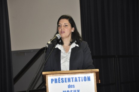 1ère adjointe, qui, entourée de ses collègues adjoints,