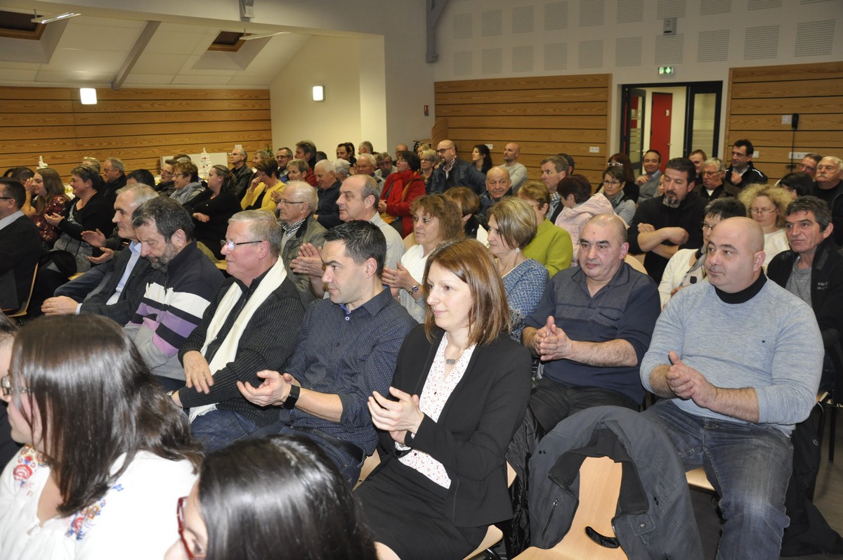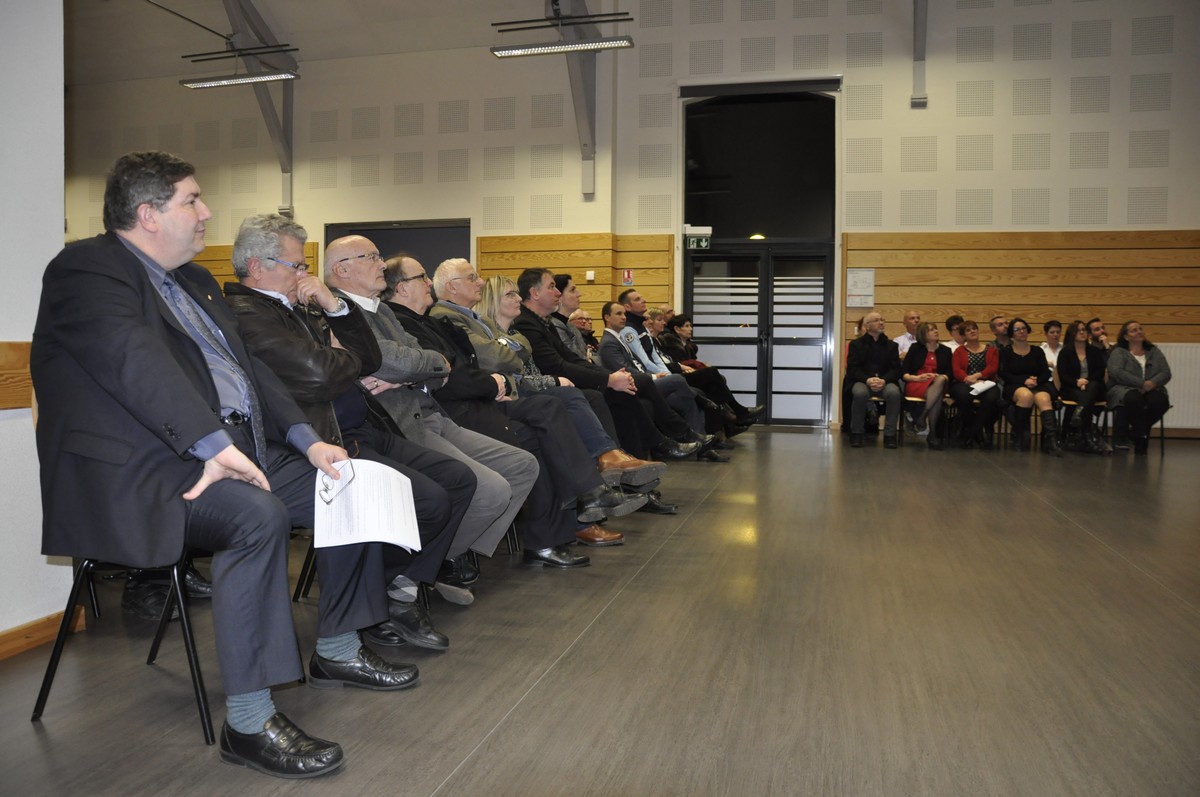A leur entrée dans la salle des fêtes, les nombreux invités à la cérémonie des vœux version 2018 n’ont pas pu échapper à la diapositive affichée sur l’écran géant consacrée à la Galerie des Arts. De quoi réjouir à Francis Pierre et Dominique Heckenbenner représentants de la SESAM à cette soirée. Une mise en valeur de cette galerie extraordinaire qui, chiffre communiqué par Adrien Andréoli, a mobilisé quelques 20 000 Euros afin qu’elle puisse s’ouvrir pour la première fois au public (voir publication du 19 09 2017). Montant complété par d’autres par l’adjoint aux finances : 16 515 Euros de baisse de dotation de l’Etat - « On a pris l’habitude… » commentait-il avce lassitude – avant de détailler les 307 342 Euros consacrés aux investissements 2017 et le grand intérêt des achats groupés (électricité et plaquettes de chaufferie pour le réseau chaleur) ayant permis des économies substantielles. Adrien Andréoli se faisait également le porte-parole d’Yvan Mougel pour ce qui concerne la gestion de la forêt : 138 317 Euros de ventes de bois, dont 20 à 30% seront consacrés aux travaux forestiers. Préalablement, Claude Babel était entré dans le détail des travaux de l’année écoulée, citant notamment la création de la zone d’activité « Favée 2 » prochainement prête à accueillir des entreprises, les travaux d’accessibilité à la mairie et à l’église et le lotissement du Bosquet dont 2 des 3 parcelles sont d’ores et déjà vendues. De son côté, Colette Grosjean a rendu compte des actions entreprises au niveau agricole et patriotique, détaillant en particulier les nombreuses et superbes animations autour de la célébration du 11 novembre 2017. Venait le tour du premier magistrat de s’emparer de la tribune. « Je suis très fier de représenter Fresse sur Moselle» lançait-il dans un premier temps avant d’adresser ses remerciements à ceux qui font la qualité des services municipaux et à la centaine de personnes ayant participé aux côtés des élus aux réflexions et propositions sur nombre de sujets dans le cadre d’une démarche de démocratie participative.