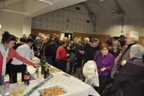 Le maire s’arrêtait un moment sur les problèmes de démographie et les menaces de fermeture de classes, voire d’école. « Nous aurons à gérer ce problème au niveau de la vallée dans son ensemble » plaidait-il. Pour 2018, il lançait de nombreux objectifs, parmi lesquels la création d’une permanence multiservices à la mairie, l’électrification rurale – un sujet sur lequel il envoyait un appel du pied bie marqué au député – le report des travaux d’enrobés sur la RN66 suite aux travaux de liaison de St Maurice vers la station d’épuration du Thillot (avec les remerciements de Ramonchamp qui devrait pouvoir profiter des crédits non consommés pour ses travaux), travaux de trottoir sur 1.6 km le long de la RN66, actions à mener suite à l’adhésion de la commune au Parc Naturel Région des Ballons (notamment dossier de subvention pour l’éclairage public)… Coiffant sa casquette de Président de la comcom, Dominique Peduzzi évoquait les travaux à venir à la piscine, dont la durée devrait être d’un an, voire un peu plus, ainsi que la réorganisation des points d’apport volontaire, moins nombreux mais mieux sécurisés avec l’espoir que ces aménagements permettront de mettre fin aux incivilités. Et de conclure « Je vous souhaite santé, énergie et envie de faire ». Il restait au député à conclure les interventions. Christophe Naegelen ne se privait pas de détailler sa motivation constante à être sur le terrain, déflorant ses interventions dans et hors hémicycle, notamment ses actions en faveur de la maternité de Remiremont - « Le dernier avis de l’ARS (Agence Régionale pour la Santé) laisse entendre qu’elle abandonne le projet de fermeture » confiait-il avec le sourire – et l’indispensable mise en adéquation des besoins en formation en liaison avec les besoins des entreprises « Le chômage dans le secteur est de 9.8% et, dans le même temps, de nombreuses entreprises ne parviennent pas à pourvoir certains postes ». Reprenant le micro quelques secondes, Dominique Peduzzi invitait chacun au verre de l’amitié… après avoir débarrassé la salle de ses chaises « Par paquets de 10 ! ».