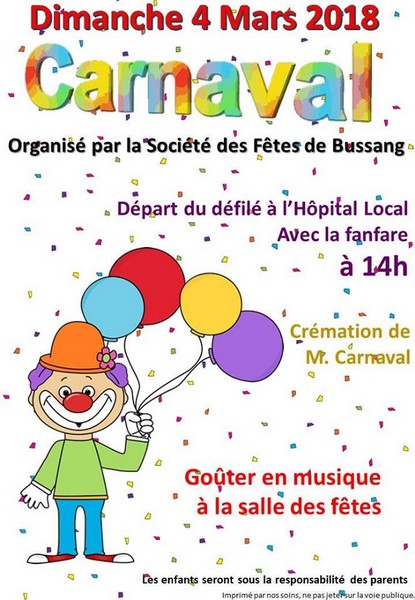 lendemain (dimanche 4 mars), le défilé de Carnaval partira de