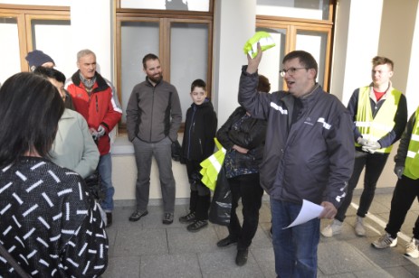 gants et de sacs poubelle et le chef d’orchestre du jour