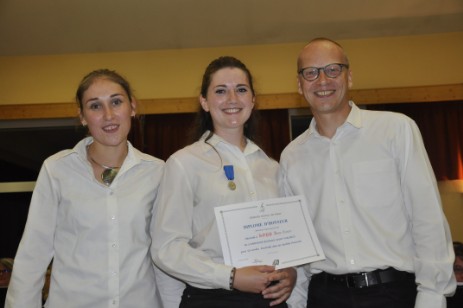 Avec mille précautions, la Présidente lui a épinglé sa médaille,