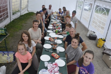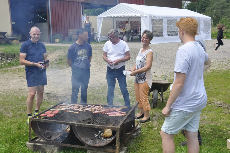 sous le chapiteau installé dans la cour du centre équestre. Autour