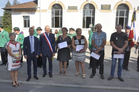 Cette année, les cérémonies du 14 juillet ont connu un faste exceptionnel, avec la présence du député qui avait tenu à être présent dans la commune pour une remise de médailles conséquente puisque ce ne sont pas moins de 16 distinctions que Christophe Naegelen a agrafé sur le revers des costumes des récipiendaires du jour, dont celle en or pour François Cunat qui a fait l’objet d’une publication sur le-thillot,com le 9 juillet (voir publication). Dans cette catégorie, la médaille Vermeil a été remise à Michèle Bernard, tandis que la médaille d’Argent a été décernée à Patrick Demange, René Munsch et Carinne Parmentier. Du côté de la Ramoncenaise Musicale, « Dédé » Thomas s’est vu remettre la médaille d’Or avec étoile pour ses 70 printemps, Sandrine Dubois la médaille d’Honneur pour ses 25 années de fidélité à la Ramoncenaise Musicale, trois médailles Juiniors pour 10 années à Anaïs Claude, Bastien Huguel et Claire Jacquel et enfin six médailles juniors pour 5 années à Francis Galmiche, François Grossely, Clément Henry, Léna Joly, Alice Remy et Alban Petitgenet. Un vin d’Honneur à la salle des fêtes a clôturé cette cérémonie.