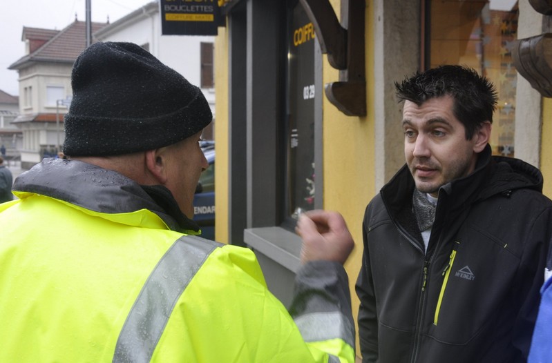 Particulièrement concerné pat le blocage de la place du 8 Mai en matinée, Vincent Remy, le patron de la Boulangerie de la Place n’a pas manqué d’aller à la rencontre des Gilets Jaunes. Une discussion respectueuse, mais aux points de vues très divergents s’en est suivie avec Daniel qui, en l’absence de Manu, avait implicitement le statut de chef de file reconnu du jour. Aux arguments du Gilet Jaune « Monsieur, je perds 140 Euros par mois depuis les dernières mesures prises par ce gouvernement. Je ne peux pas laisser faire sans réagir ! », le patron de la boulangerie répondait : « Je suis totalement avec vous sur le fond. Il faut faire quelque chose pour redonner du pouvoir d’achat aux gens. Sur la forme, par contre, je ne suis pas du tout d’accord. Les commerces du centre-ville souffrent énormément des actions que vous menez. Je n’ai pas de solution à vous proposer. Mais je peux vous dire que, comme d’autres commerces, je perds beaucoup de chiffre d’affaires suite à ce mouvement. J’ai 20 salariés à payer. Si je dois leur dire que je n’ai pas les moyens de leur offrir une prime de Noël cette année ou pire, si je ne peux plus les payer et que je sois dans l’obligation d’en licencier, j’en serai le premier consterné. Je ne peux pas dépenser de l’argent qui n’est pas rentré ! ».