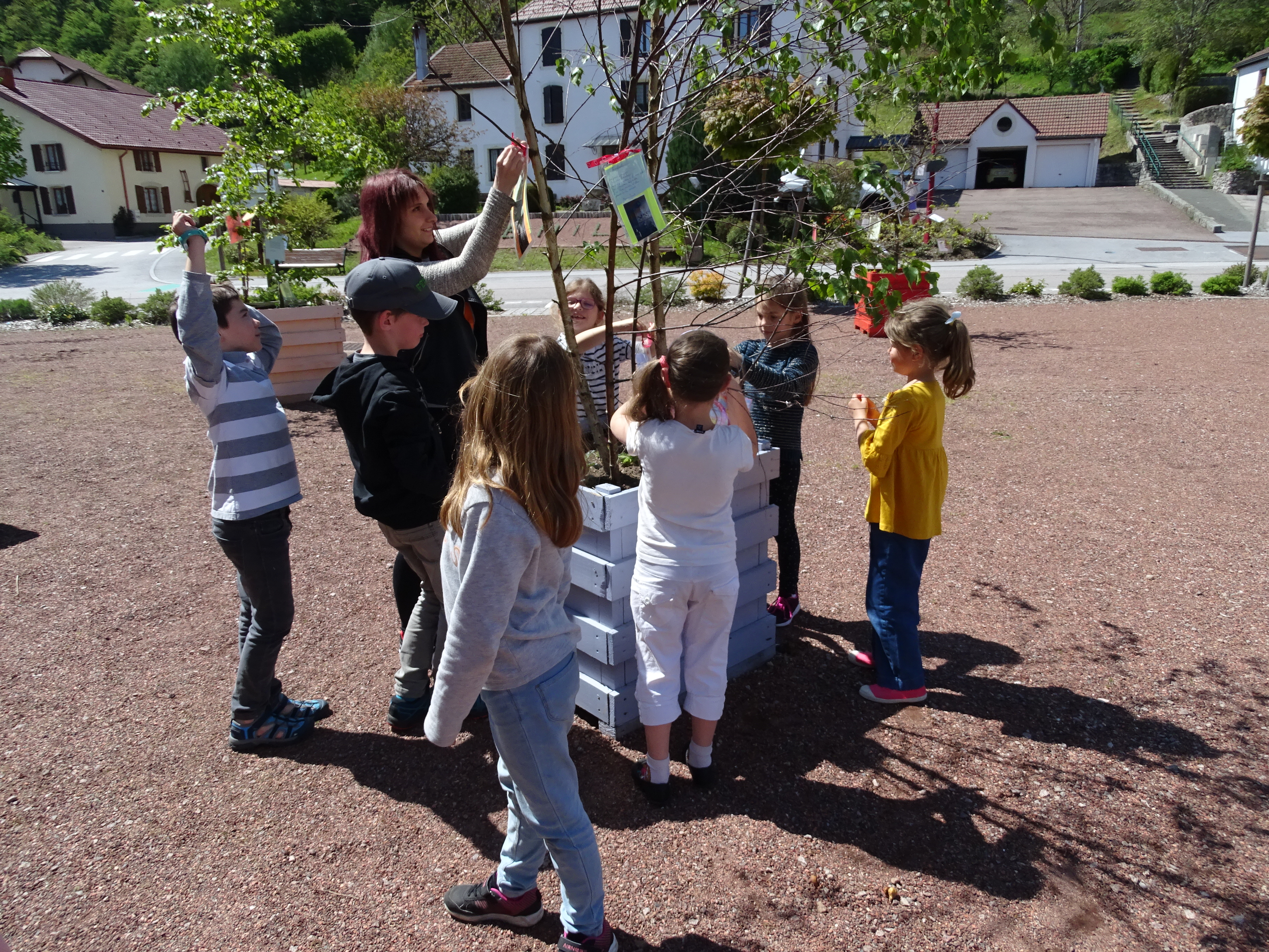 sur les arbres à poèmes du centre-village qui ont ainsi rejoint les