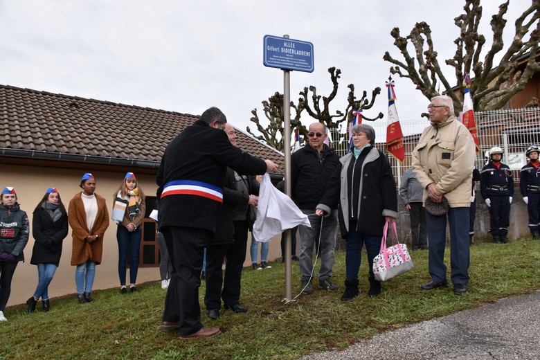 Ce 11 novembre était aussi l’opportunité de découvrir le panneau permettant à Gilbert Didierlaurent de passer à la postérité. La plaque a été dévoilée en présence de Monique Bazin et Michel Didierlaurent, les deux enfants de l’ancien déporté disparu en 2017 ayant connu les atrocités des camps de Schirmeck, de Dachau et Augsbourg jusqu’à sa libération le 25 avril 1945.