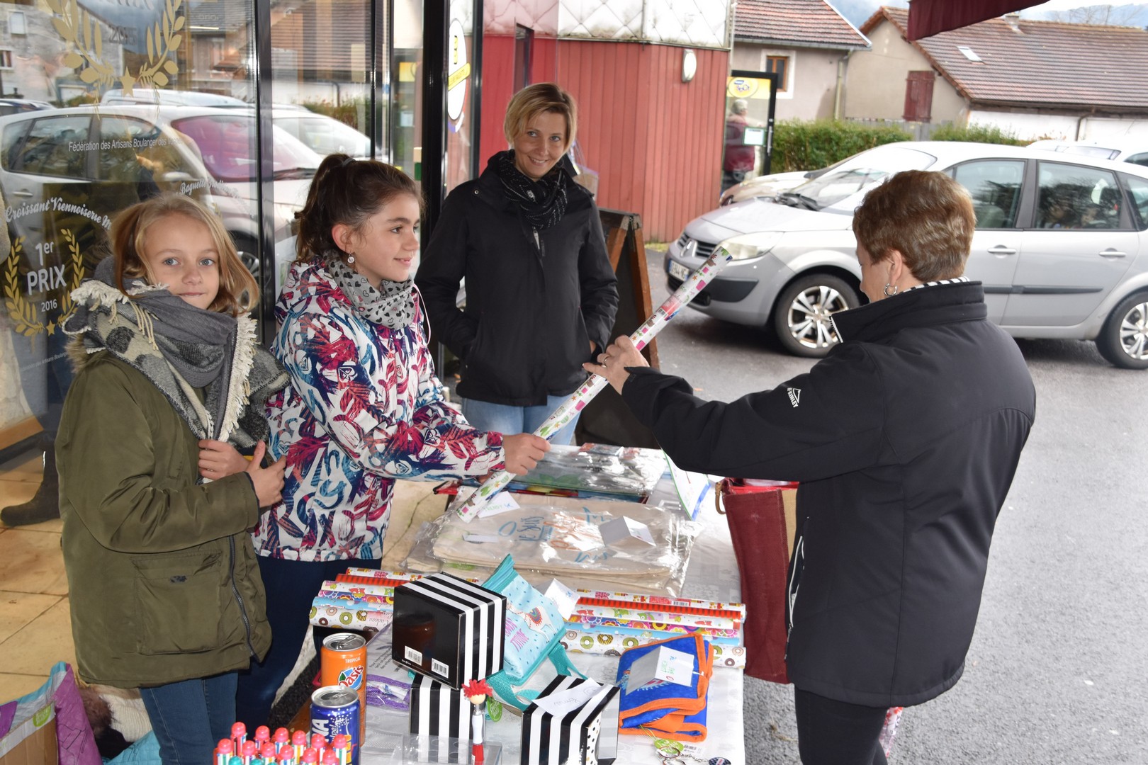 Samedi et dimanche matin, des écoliers accompagnés de quelques parents avaient installé un stand devant la boulangerie Pinot. Objectif : vendre divers objets afin que les bénéfices entrent dans la cagnotte qui servira en juin prochain à financer une classe verte au centre ODCVL de la Bresse.