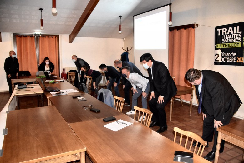 En acceptant l’invitation à l’assemblée générale du club lancée par son président Jean-Paul Canonaco, les élus ne se doutaient certainement pas qu’ils allaient participer à une séance de gym ! A la sollicitation de Delphine Varette, Christophe Naegelen, Jean Hingray, Dominique Peduzzi, Michel Mourot, ainsi que Jean-Pierre Begel, le président départemental de l’AVEC, ont suivi de bonne grâce le mouvement qui a vu toute la salle se lever et effectuer quelques mouvements initiés par l’animatrice sportive. Des mouvements en douceur, du type de ceux qu’elle propose à son public au cours des sorties labellisées « Prescrimouv » (voir https://www.le-thillot.com/Archives_2021/2021_11_20-delphine-prescrimouv.html) une activité parmi celles que le partenariat entre « Zébulon Sport » sa microentreprise et l’association sportive locale a permis de mettre en œuvre, comme les séances de Zumba, Strong, Coatching et cette nouvelle discipline, le « Pound » qui séduit énormément par son côté rock, ludique et défoulant.