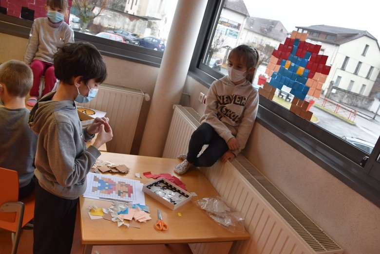 enfants étaient invités à venir décorer l’établissement avec des œuvres en