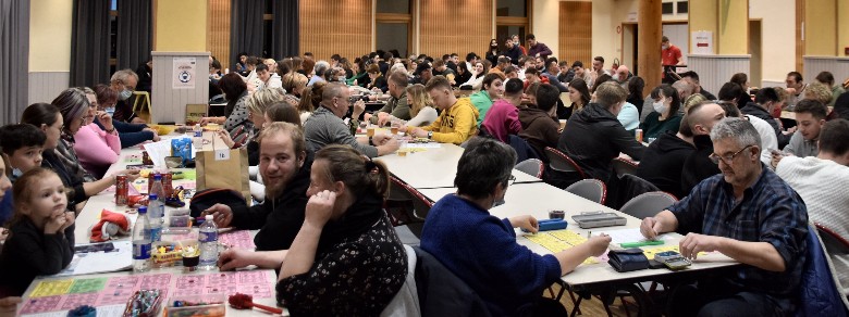 des tables pour se concentrer à l’écoute des numéros sortis de la boule mise à