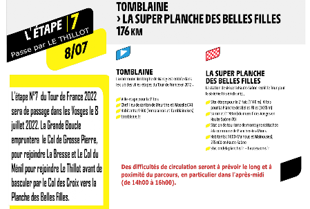 Après son passage en 2019, la Grande Boucle sera de retour dans la commune le 8 juillet prochain. Lors de cette septième étape de 176 kilomètres, qui permettra aux « pro » de la petite reine de rallier la désormais célèbre Super Planche des Belles Filles au départ de Tomblaine, les coureurs du Tour de France en provenance des Cols de Grosse Pierre et des Fenesses passera par la commune avant de s’échauffer le mollets dans les pentes du Col des Croix avant l’arrivée qui devrait une nouvelle fois servir de juge de paix au terme de cette étape.