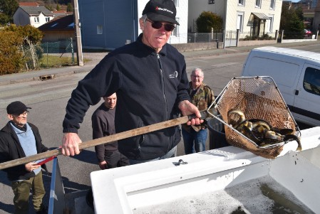 Des poissons élevés deux années en pisciculture et dont la taille varie entre 25 et 30 cm et qui ont quitté la citerne pour être dispatchés en dix lieux le long de la Moselle et du ruisseau de la Mouline.