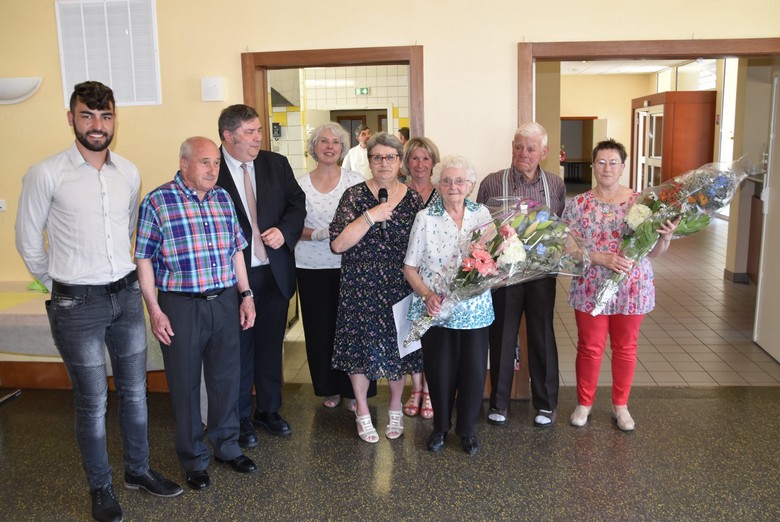 Odette Aubert 98 ans, ancienne garde-barrière des Ajols et Fernand Luttebacher, l’ancien « boss » du Rouge-Gazon, 90 ans qui, en cette occasion, offrait l’apéritif sous les applaudissements, étaient ainsi mis à l’honneur. « Lili », présente cette année à la table des invités était distinguée pour ses quarante années de mobilisation fidèle à ces repas traditionnels. La cheffe d’orchestre de cette journée ne manquait d’avoir une pensée pour la doyenne de la cité : Suzanne Blaise qui vient de souffler les bougies de son centenaire (voir https://www.le-thillot.com/2022_03_09-le-thillot---st-maurice---bussang-100-ans-de-suzanne-blaise.html).