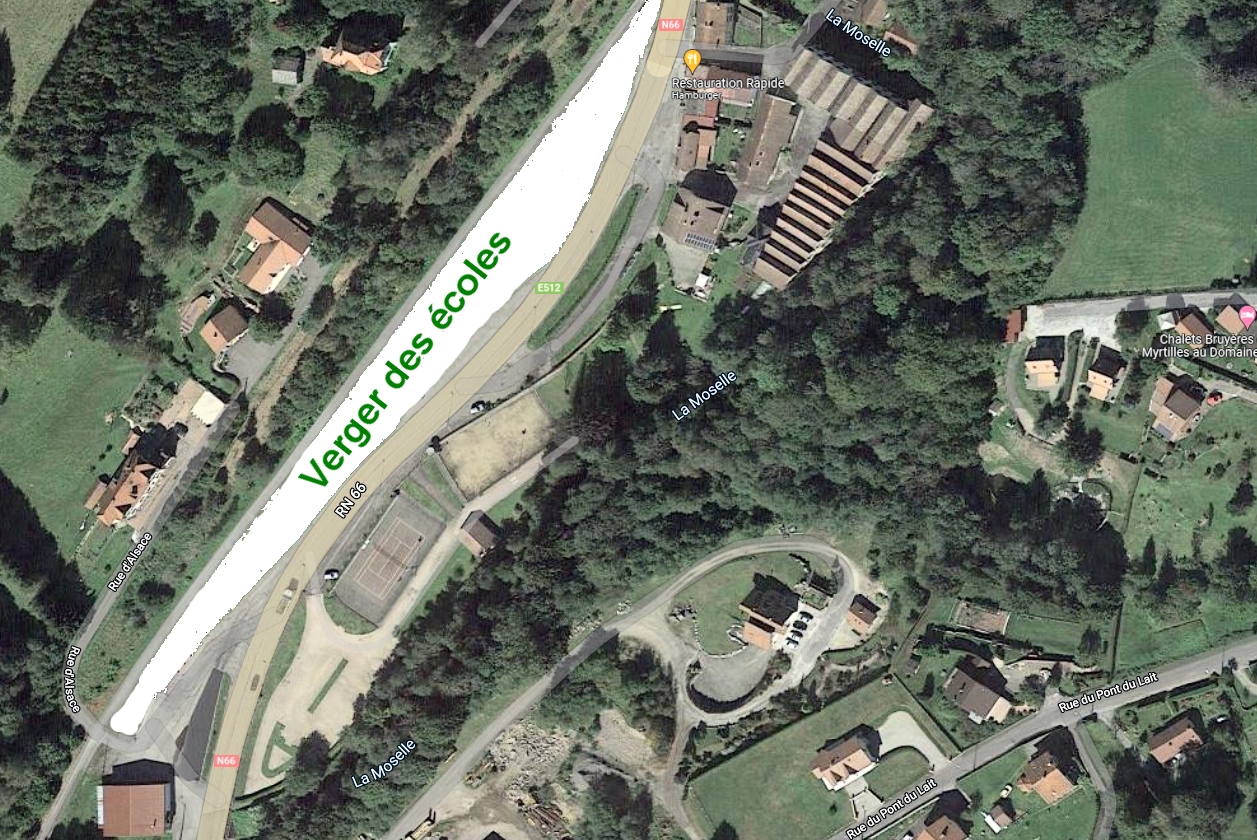 aux courts de tennis de la côté de la RN66 (voir photo) et où 8 arbres