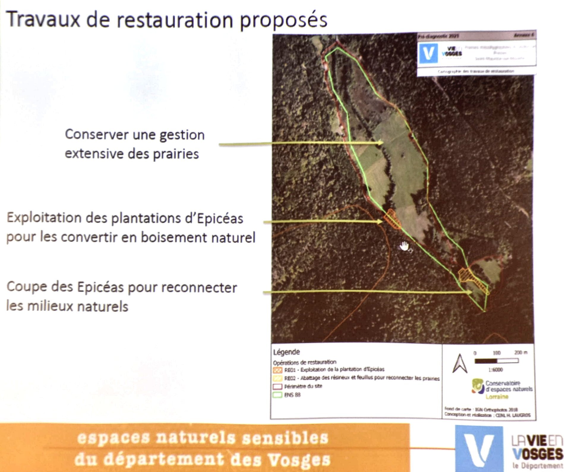« Le constat est déjà très bon » se félicitait Hélène Legros, la scientifique de la délégation du Conservatoire des Espaces Naturels du Département. Il est question d’une concertation avec l’ONF pour un plan d’une durée de 15 ans minimum afin de continuer, voire aller plus loin encore, dans la conservation de ce lieu remarquable afin de favoriser une gestion durable des habitats forestiers et maintenir une bonne qualité des cours d’eau de tête de bassin.